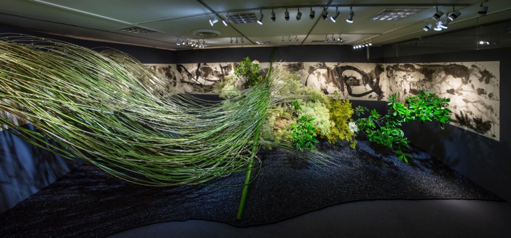 立花以木作山,以草表水,在一瓶作品里表现出自然的景观美,甚至是世间的森罗万象。其构造复杂严谨,以一种抽象的意念模仿山水画,通过枝条的前后左右伸展体现大自然的韵律美感,具有高贵典雅的东方之美。