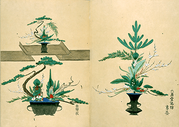 文化元年(1804)池坊最初的生花图集≪百花式≫发行,4年后刊行了续编后百花式≫,收录了各地许多门弟的作品。文政3年(1820),生花逐渐偏向注重技巧,而为了明示生花正确的姿态,发行了收录100幅专定生花图的≪插花百规≫,确立了池坊生花的方向性。